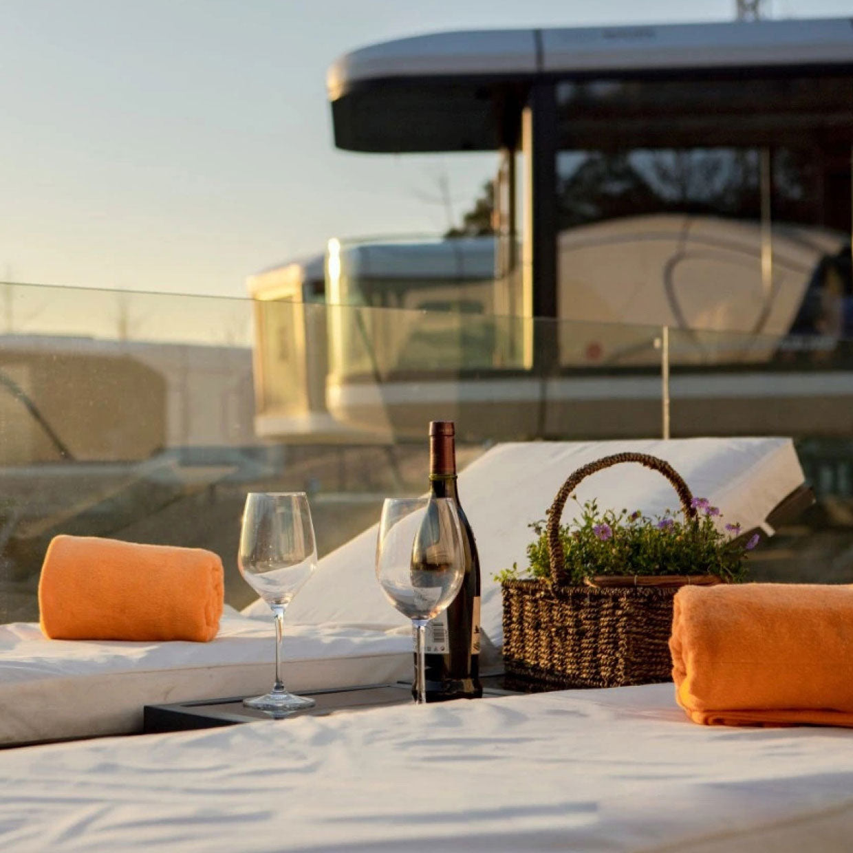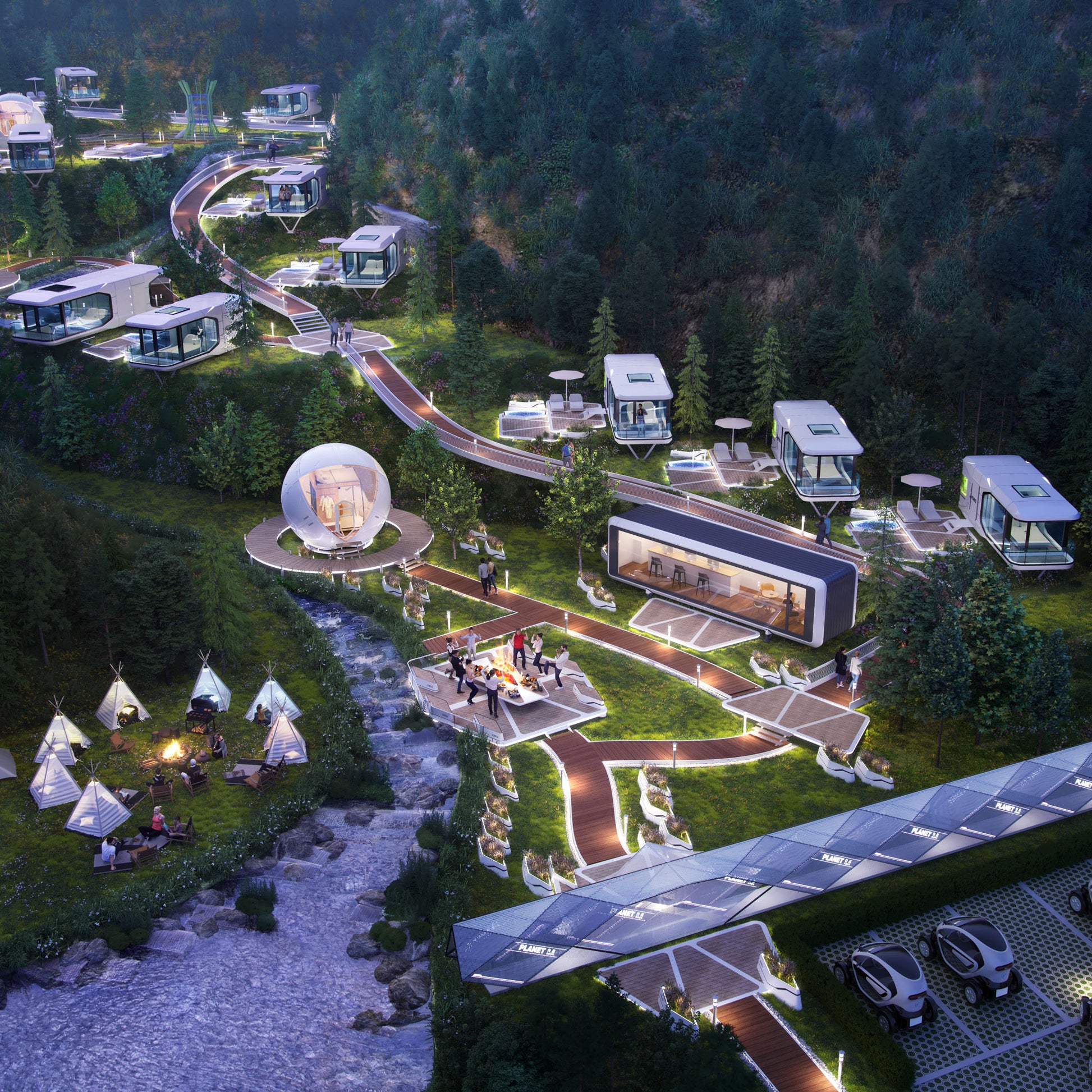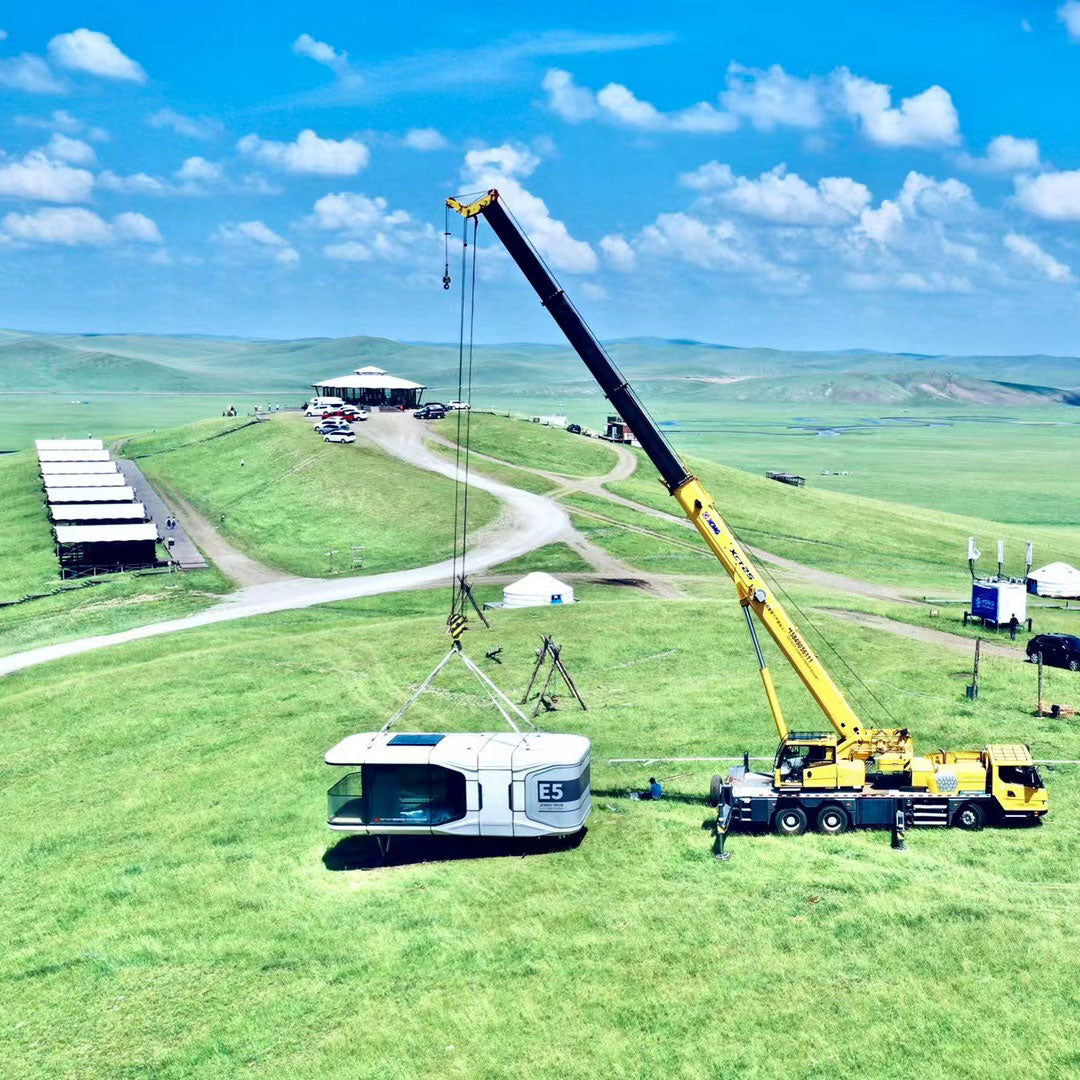 Lunar Estate E5 is well-insulated and features panoramic floor-to-ceiling windows, large viewing skylight & terrace, perfect for viewing and entertainment. Its tough, aluminium body is reminiscent of a spaceship, which is full of technology and mystery. Inside the cosy interior, you'll find double room and a king-size bed, everything there can be customise Whether for travellers, adventurers, outdoor living lovers, etc.,